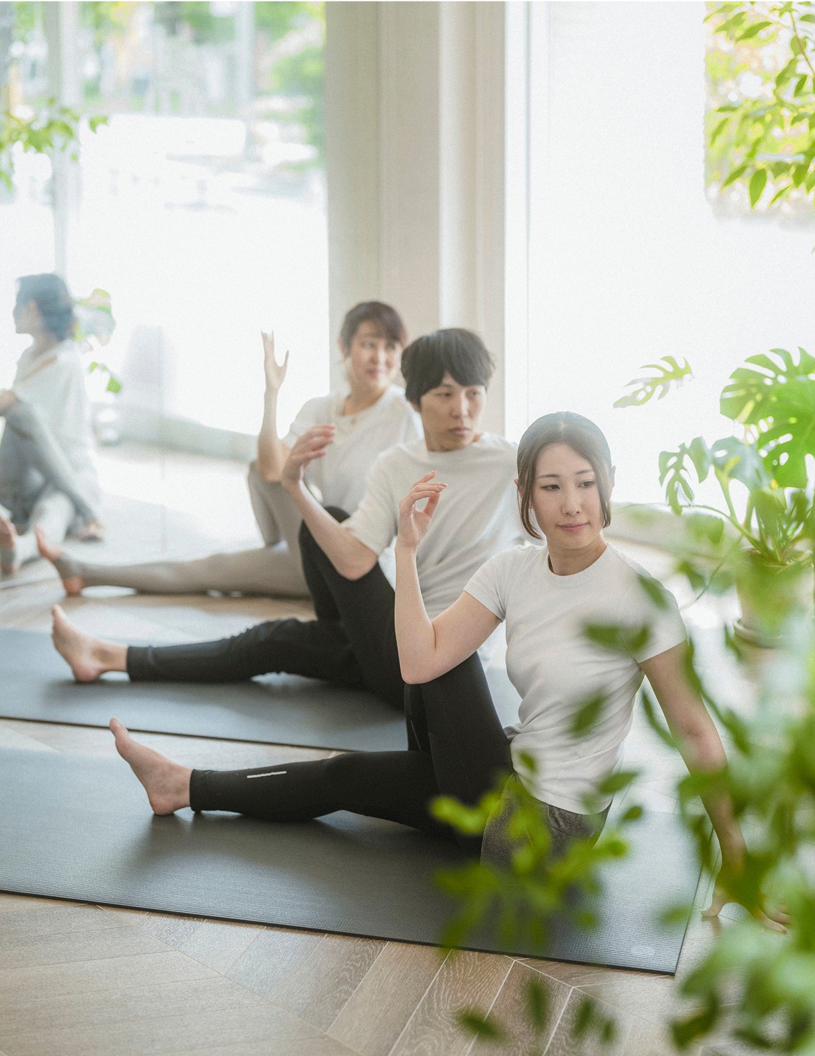 心身のバランスに影響する背骨に着目し、ヨガ・ピラティスに加えて背骨コンディショニングのクラスも開講。神経や血流の巡りを整え、身体本来の調子を引き出すことを目指しています。
